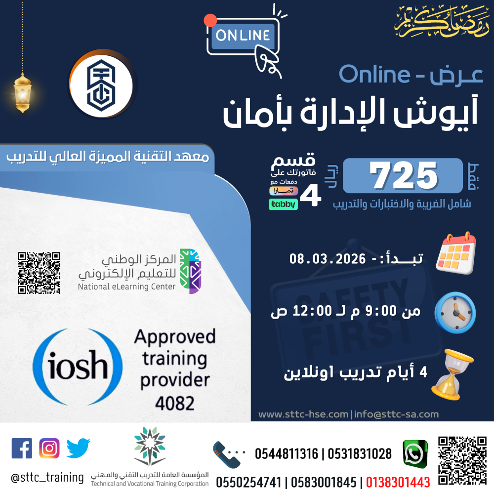 مؤسسة السلامة والصحة المهنية (IOSH) هي الهيئة المعتمدة وأكبر منظمات أخصائيي السلامة والصحة من حيث عدد الاعضاء، وتتواجد في أكثر من 130 دولة، تقدم عددا كبيرا من البرامج التدريبية المتخصصة التي تهدف الى إنشاء أماكن عمل أكثر أمانا واستقراراً واستدامة,